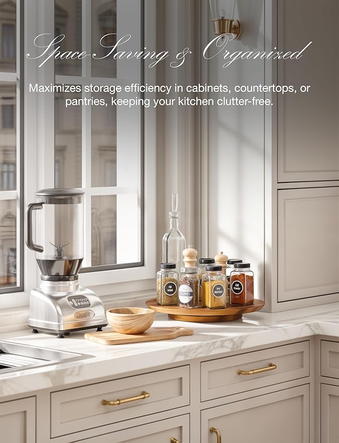 - Spacious & Versatile Size: With a generous 13-inch diameter, this large Lazy Susan tray offers ample space, making it ideal as a spice rack, pantry organizer, or stylish charcuterie board. Perfect for kitchen countertops, dinner tables, or pantry shelves