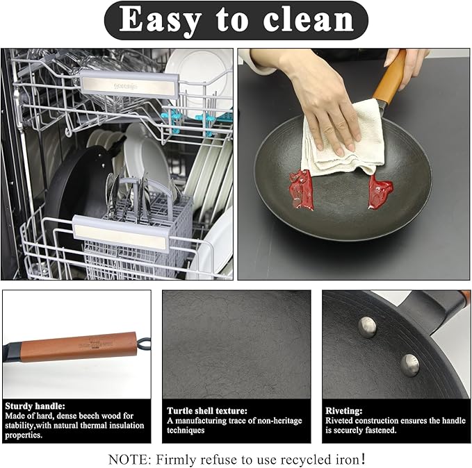 - No Coating, Just Pure Iron – Durable, Scratch-Resistant Made from 100% virgin pig iron with no enamel or chemical coatings. Withstands high heat, and works well with metal utensils. Unlike coated pans, our cast iron omelette pan won’t peel or chip—it's scratch-resistant ironware built to last generations, just like a traditional wok in a Chinese home