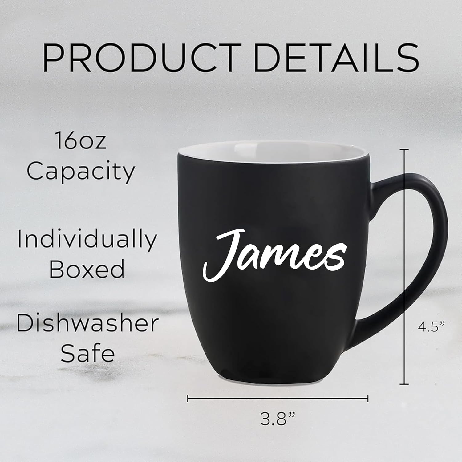 - 16oz Laser Engraved Ceramic Cup: Durable, microwave safe, dishwasher friendly, ideal for coffee, tea or hot chocolate, with an ergonomic handle for comfortable use. High-precision technology ensures that the text and design are clear and fade-resistant for a “customized mug that lasts a lifetime”.
