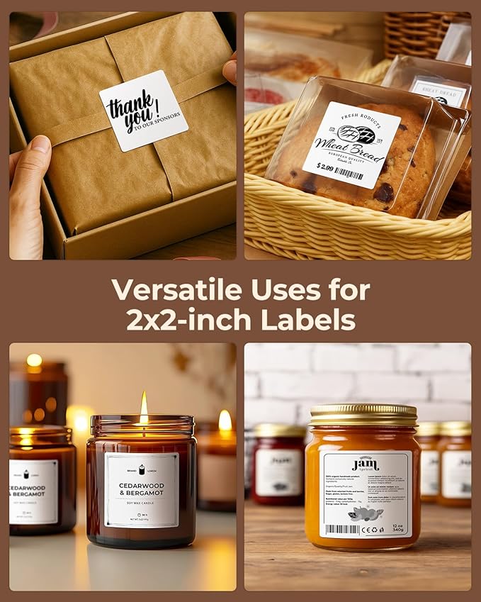 - Reliable Adhesion: 2x2 inch thermal labels have a strong adhesive to ensure they stick securely to various surfaces including packaging, making them ideal for small business sellers