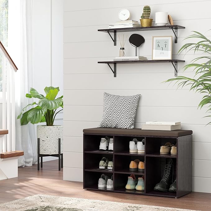 DINZI LVJ Long Wall Shelves, 23.6 Inch Wall Mounted Shelves Set of 2, Easy-to-Install, Wall Storage Ledges with Sturdy Metal Brackets for Living Room, Bathroom, Bedroom, Kitchen, Espresso