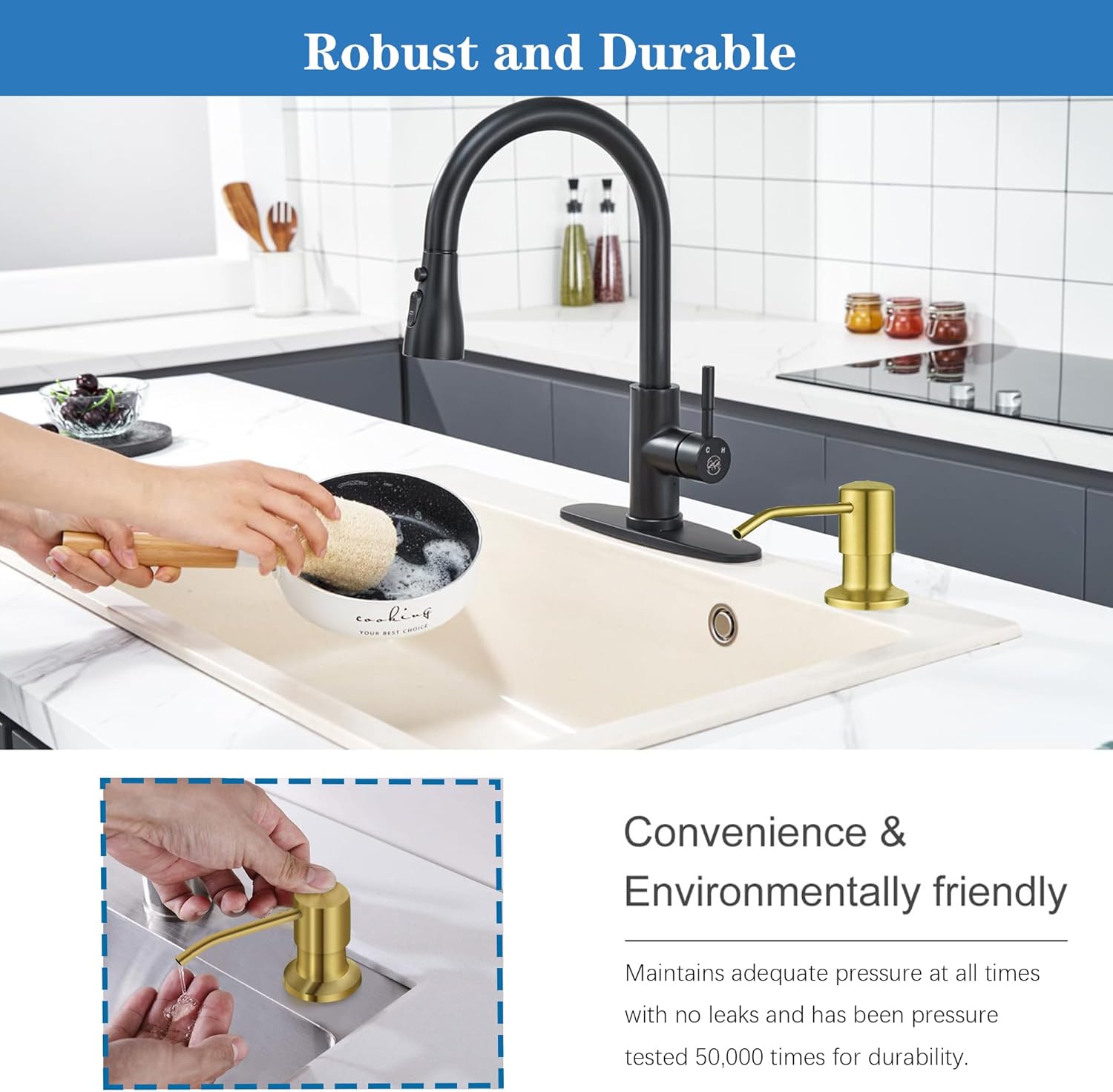 - Easy Refill : Bid adieu to the hassle of frequent refills by eschewing the need to delve beneath the sink. Our dish soap dispenser boasts a conduit that seamlessly connects to a capacious dish soap container, rendering the refill process an infrequent necessity.