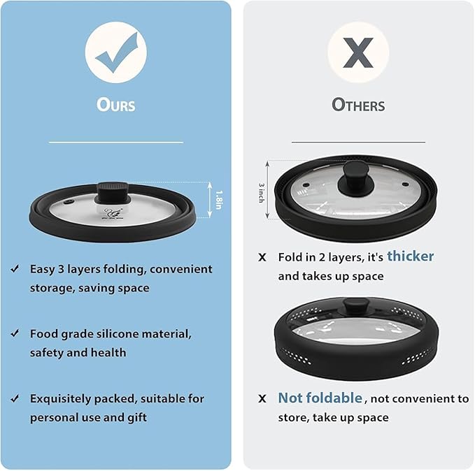 - 【UNIQUE HANDLE】: Splatter guard lid with easy grip silicone diamond handle, 100% Tempered glass, 100% food grade, BPA Free and dishwasher safe, It can also be used as a common pot cover, Convenient multi-purpose pot cover.