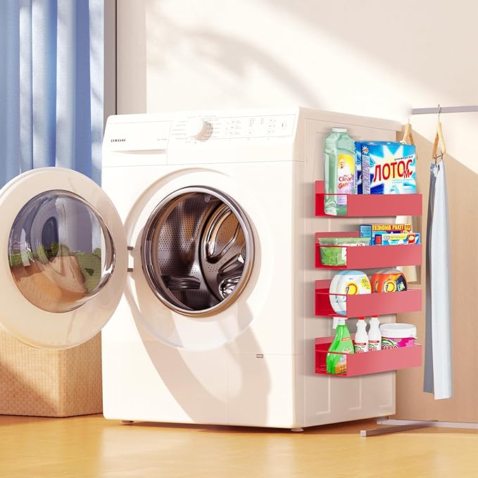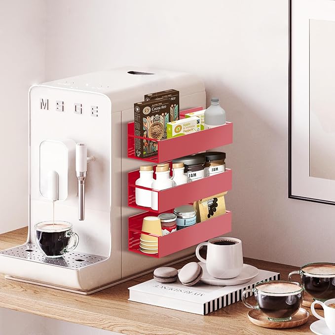 Magnetic Spice Rack Organizer for Fridge Seasoning Organizer for Kitchen Storage With Screw Magnetic Shelf for Oven, RV,Garage,Bathroom (Red, 4pack)