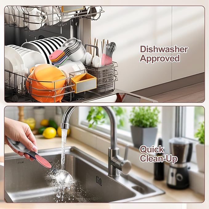 - Non-Slip Silicone Handles: Unlike slippery all-metal measuring tools, our stainless steel cups/spoons have heat-resistant silicone grips (450°F) for a secure hold—even with oily or sticky ingredients