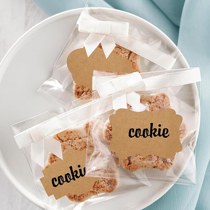 Dark Kraft Labels Stickers, 250 PCS 3" x 2" Fancy Shape Stickers Labels for Storage Box or Food Jars Holiday Present Stickers Christmas Gift Tags
