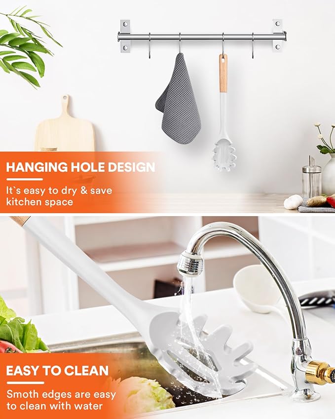 - Just Want To Provide The Best For You : The soft food-grade silicone head is designed for noise-free cooking. Unique sawtooth design, easy to pick up noodles. Whether it is used for stirring or serving spaghetti. Our silicone pasta fork will add more fun to your kitchen
