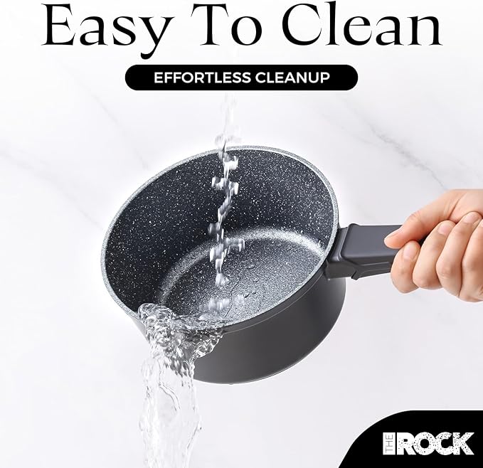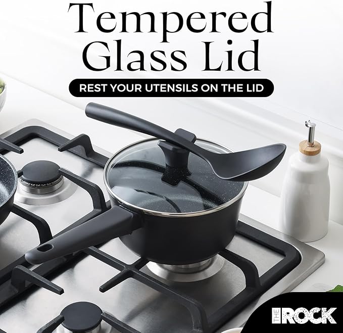 THE ROCK SOHO Nonstick Saucepan with Lid, 2 Quarts Small Pot with PPG Quantum2 Coating – Durable for Urban Kitchens, Nothing Sticks, Never Warps, Lasts Longer, Induction Compatible, PFOA-Free, Black