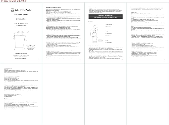 - POWERFUL & ENERGY-EFFICIENT MOTOR - The Drinkpod DP-C-JUICER Electric Citrus Juicer features advanced motor gear technology for powerful and efficient juice extraction at only 120 Watts. Delivering the same performance as 160W juicers, it operates quietly, uses less energy, and is designed for long-lasting durability.