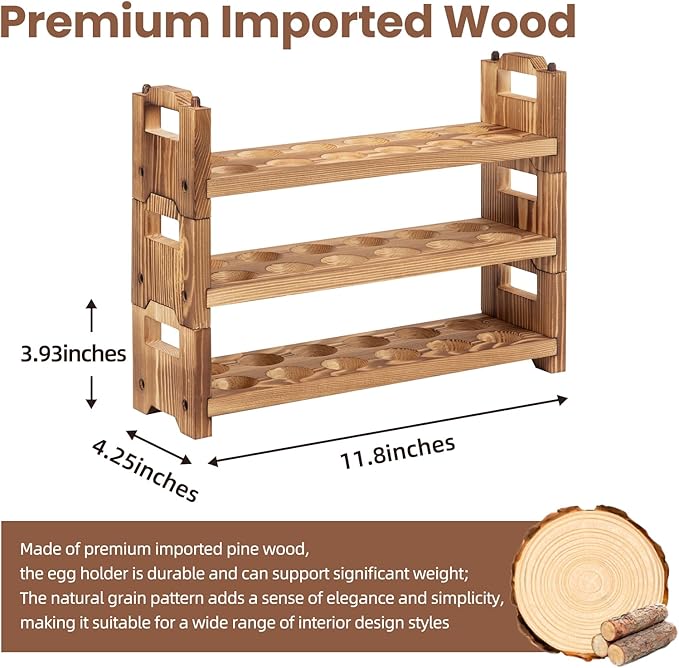 - PREMIUM SOLID WOOD EGG HOLDER - Made of high - quality solid wood, the egg holder is not only durable but also gives a natural and elegant look. The solid wood construction ensures that it can withstand the weight of eggs and daily use without easily getting damaged.
