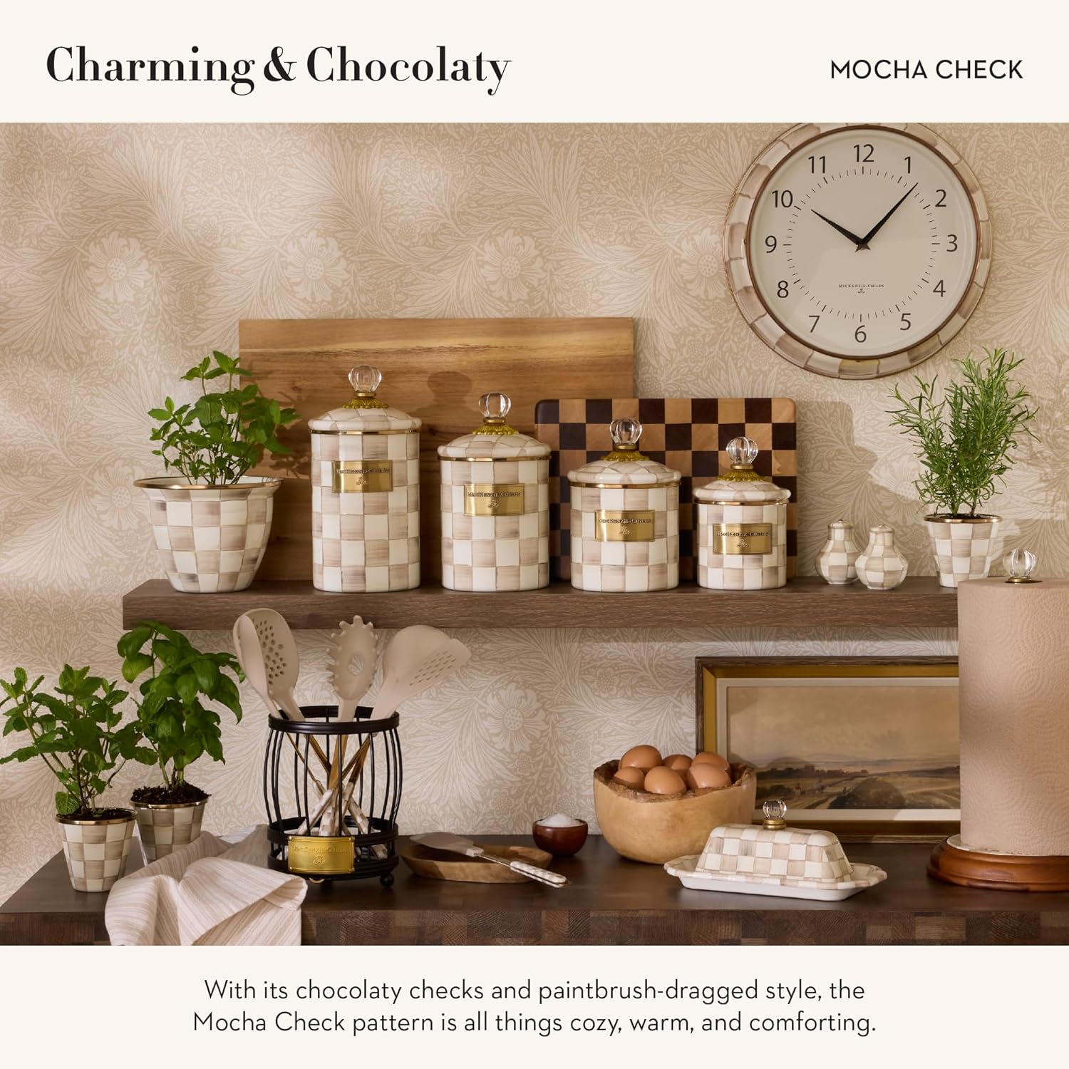 - ELEGANT INDOOR PLANTERS: Featuring hand-painted color-dragged checks, our charming brown-and-white Mocha Check pattern brightens a tiny indoor garden or a tabletop planter centerpiece and goes with any decorative theme.