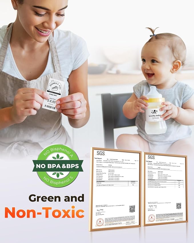 - Safe and Waterproof: Tested to be free of harmful chemicals such as BPA and BPS, ensuring they are pollution-free, and are waterproof and oil-proof, so barcode labels is no need to worry about the label paper being wetted by water and the writing being blurred