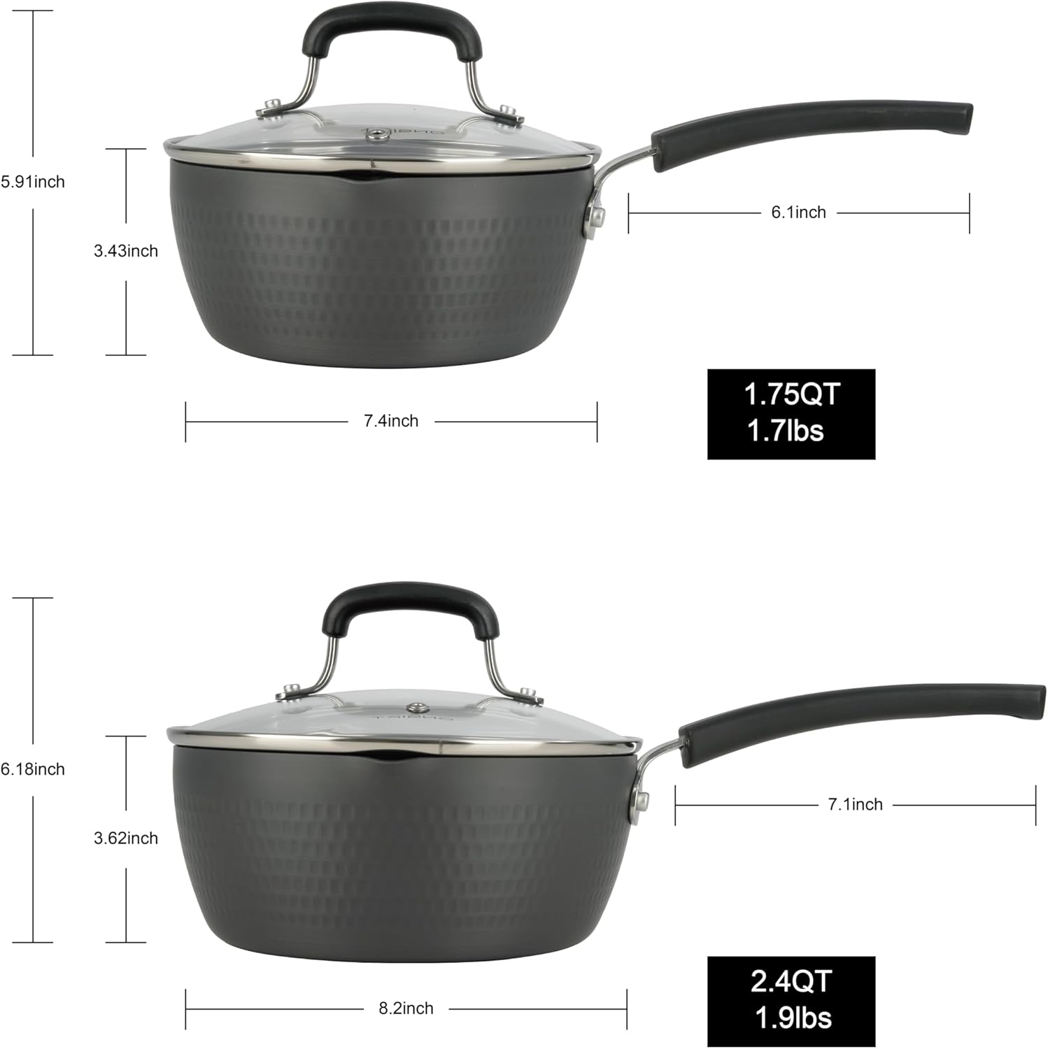 Nonstick Small Sauce Pan with Lid, 1.75 Quart and 2.4 Quart Sauce pan with Pour Spouts, Multipurpose Handy Little Saucepan with Stay Cool Handle, Small Pots for Cooking, Soups, Noodles, Milk