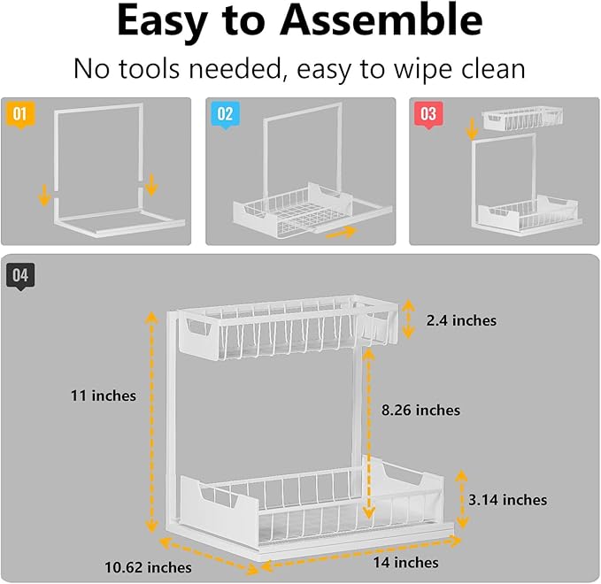 - Versatile: Pull out cabinet organizer can be used under a kitchen or bathroom sink, you can also put it on the counter