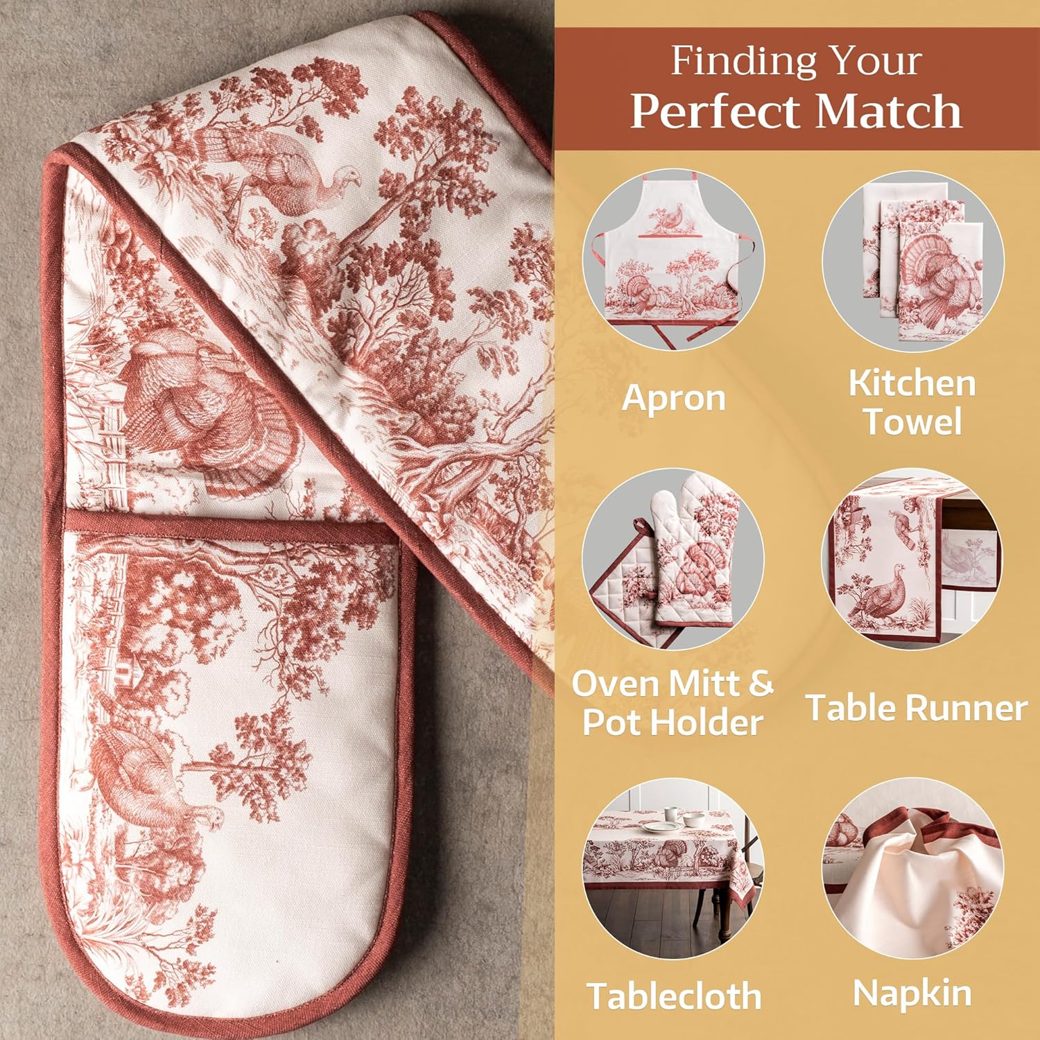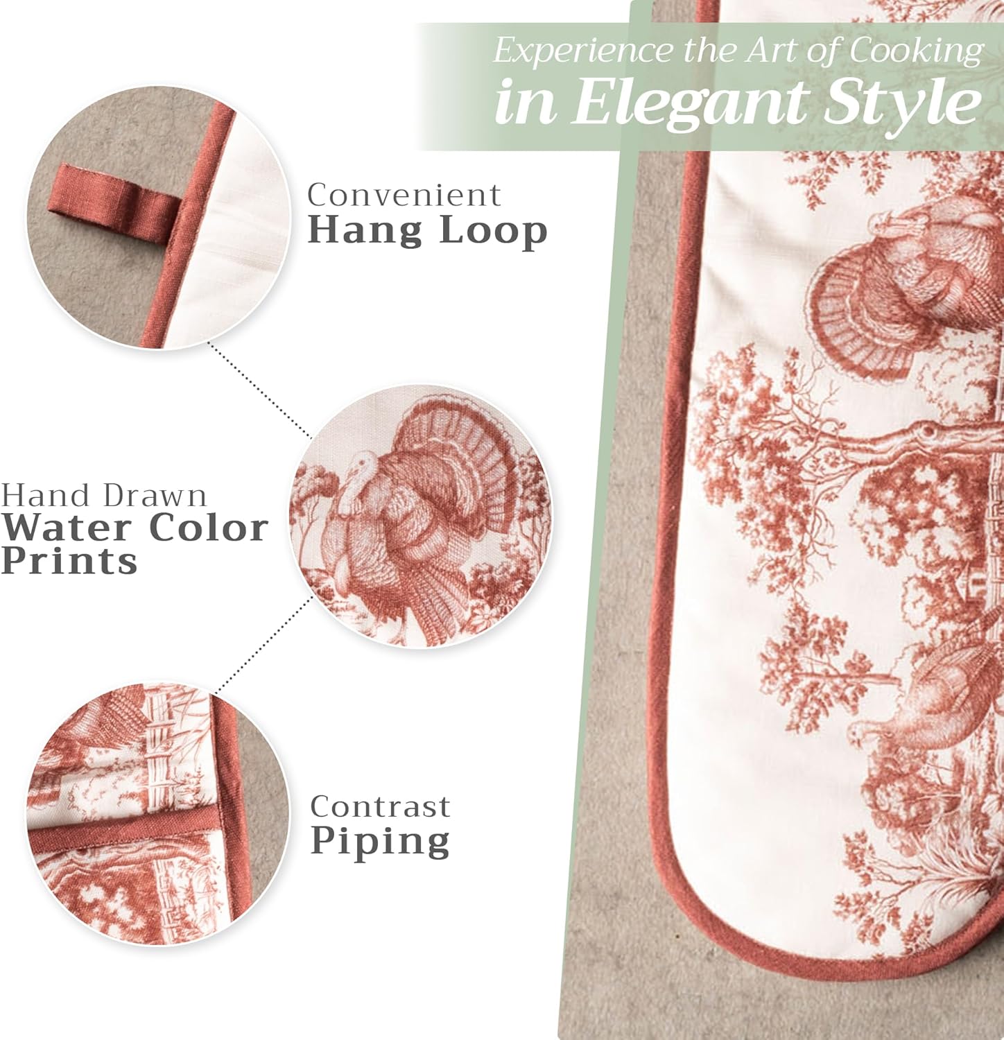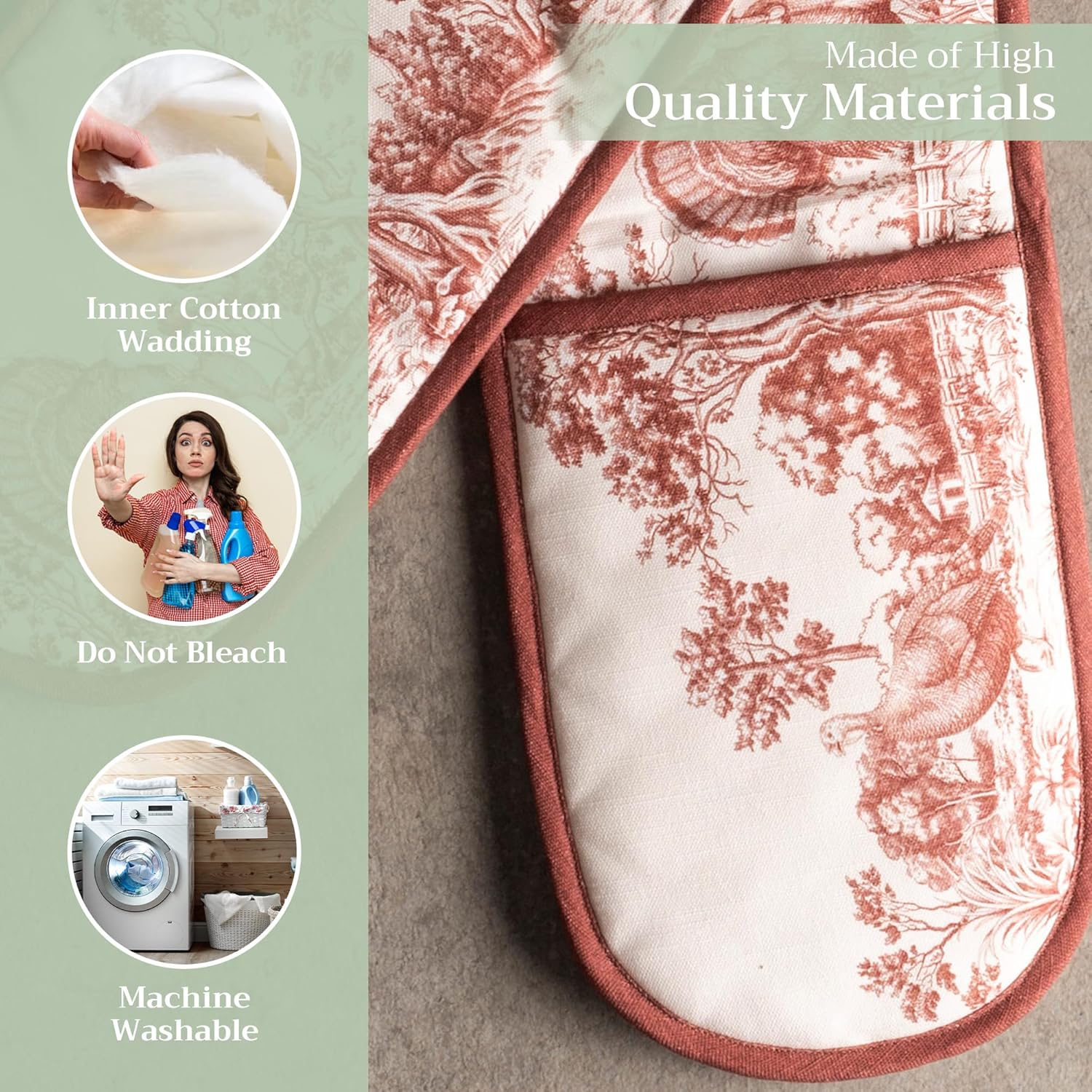 Maison d' Hermine Double Oven Mitt 100% Cotton Heat Resistant Cooking Gloves with Loop, Baking Barbeque, Handling Hot Pan, Holy Jouy - Brown - Thanksgiving/Christmas (7 Inch x 35 Inch)
