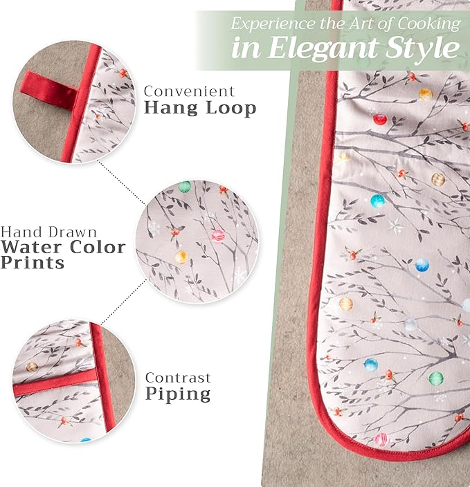 Maison d' Hermine Double Oven Mitt 100% Cotton Heat Resistant Cooking Gloves with Loop, Baking Barbeque, Handling Hot Pan, Fairy Christmas - Thanksgiving/Christmas (7 Inch x 35 Inch)