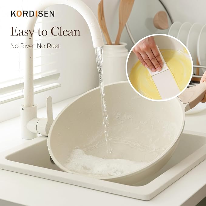 - 【Easy to Clean】: With its non-stick surface and rivet-free design, this induction wok pan is incredibly easy to clean; simply wipe it with a sponge and warm soapy water after use, or you can even place it in the dishwasher for added convenience