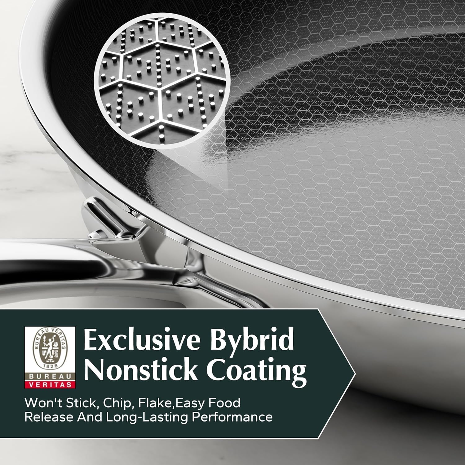 - Hybrid Honeycomb Structure: This innovative hybrid honeycomb structure offers superior non-stick properties, ensuring the ceramic coating remains intact and does not peel off, while effortlessly preserving the natural characteristics of food