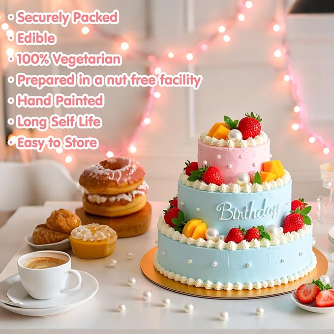 - Versatile Dessert Decoration:1 edible bottle of White pearl sugar, 130g/4.58 oz.Our sprinkles includes 5 different sizes of White beads,perfect for meeting all your baking decoration needs.The sugar decorations are edibled candies. It is normal for large candies to have a hard texture and can be eaten with confidence.After baking,decorate the cookies or cake with pearl sugar to avoid melting