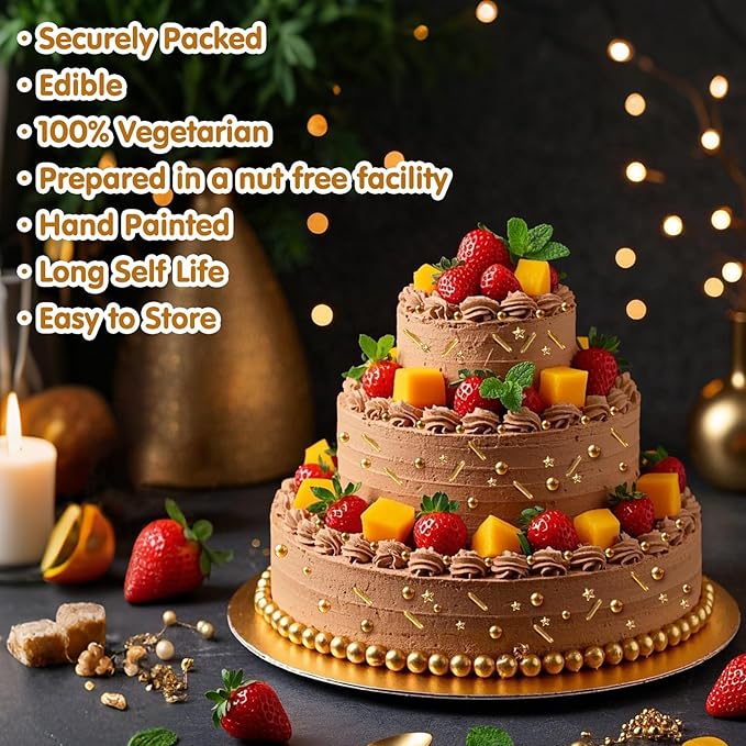 - Versatile Dessert Decoration: Our sprinkles includes different sizes of gold beads and golden Rods stars,perfect for meeting all your baking decoration needs.The sugar decorations are edibled candies. It is normal for large candies to have a hard texture and can be eaten with confidence.After baking, decorate the cookies or cake with pearl sugar to avoid melting