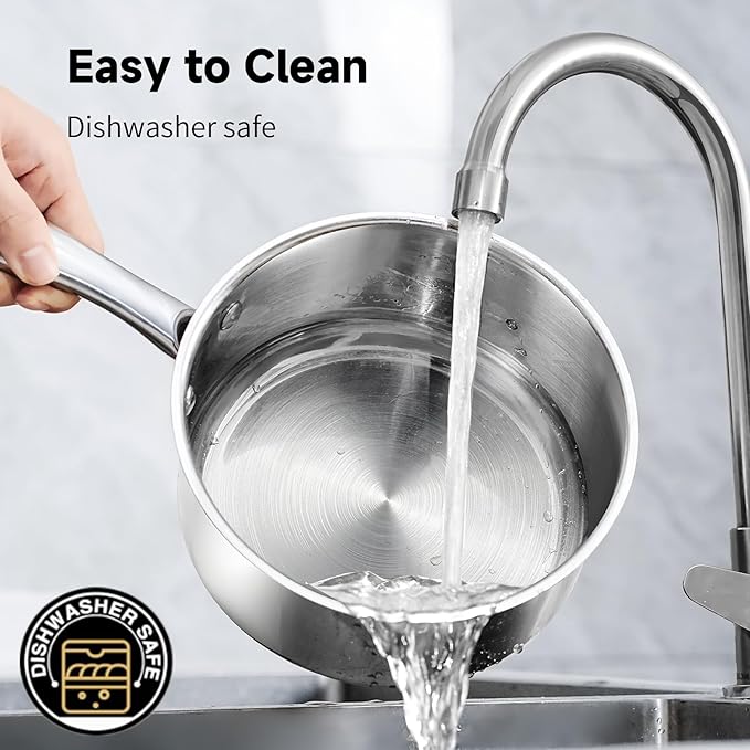 - Suitable For All Stove:Our saucepan work safe on all types of stovetops, including gas, electric, glass, halogen.Oven safe up to 500F, dishwasher safe.