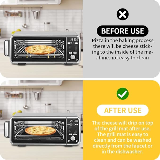 - ใ๐ ๐จ๐จ๐ ๐๐ซ๐๐๐ ๐๐๐ญ๐๐ซ๐ข๐๐ฅใ: Our Oven Liner & Mesh Sheets are made of Non-Toxic Material, BPA free, high temperature resistant, anti-corrosion (Please use it below 450 ยฐ F/232 ยฐ C), it is more heavy duty than othe regular Oven Grill Baking Mats by market.