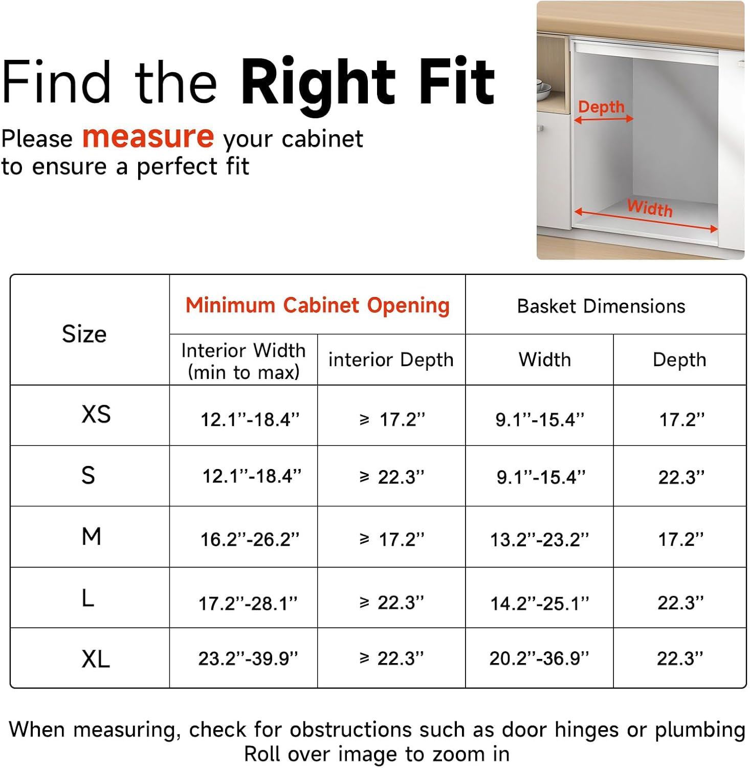 - Easy to Install: The slide out drawer is side-mounted. Follow the installation instructions step by step, measure the size of your cabinet and then hit the screws can be done easily. Please choose the size you need before you buy, please note that first measure the size of your cabinet before you buy, to avoid the trouble of return, It can fit in cabinets with a width of 11.8'' to 18'' and a depth of 17.3".