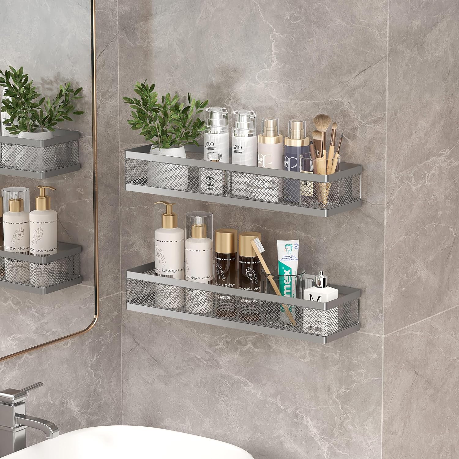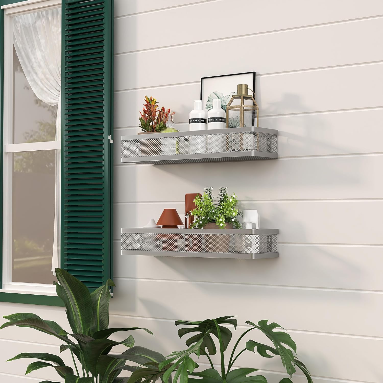 PUSDON Metal Wall Hanging Basket 2 Packs DIY Suitable for Multiple Scenes - Large Silver Grey Netting