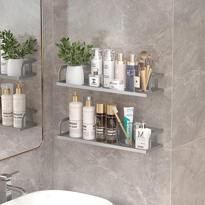 PUSDON Metal Wall Hanging Basket 2 Packs DIY Suitable for Multiple Scenes - Large Silver Grey Hollowout