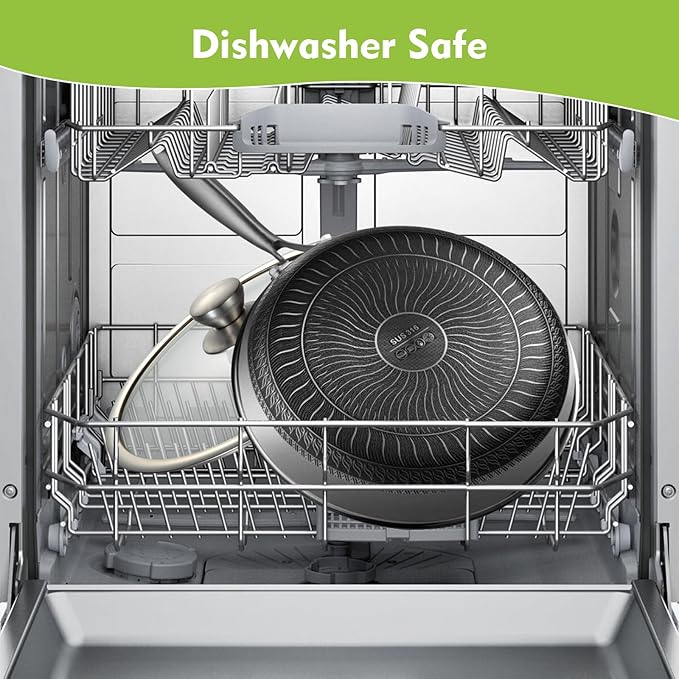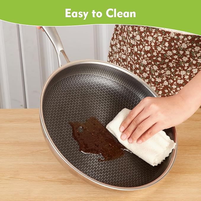 - Practical & Healthy Construction: The skillet is made from high-quality 316 stainless steel, ensuring strength and durability. The interior features a honeycomb carving that enhances the non-stick properties. It is non-toxic and free from PTFE, PFOA, PFAS, lead, cadmium, and other harmful substances, promoting healthy cooking.