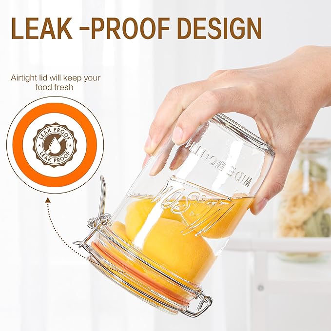 - 【Leak-Proof When Used Properly – Tips for Storing Liquids】 Our jars are designed to be airtight and leak-proof, but please note: when storing liquids, make sure to wipe the silicone sealing ring dry before closing the lid. If moisture remains on the gasket, it may prevent a tight seal and cause minor leakage. A quick wipe ensures a secure fit every time—perfect for juices, syrups,pickles