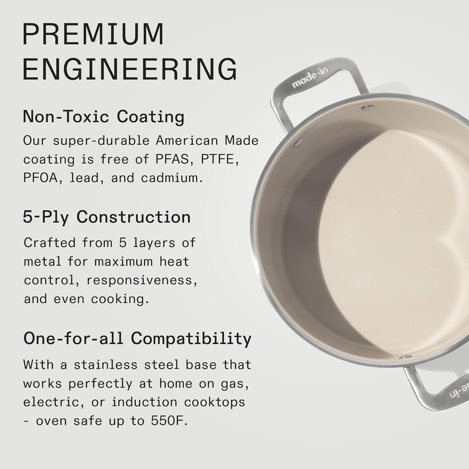 - High-Performance Ceramic Coating - Our super-durable ceramic coating is free of PFAS, PTFE, PFOA, lead, and cadmium