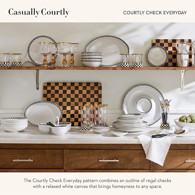 - ELEGANT SERVING ESSENTIALS: Each Courtly Check Everyday stoneware platter is dishwasher-safe and microwave-safe. The classic white body is rimmed with hand-applied black-and-white Courtly Check transfers.