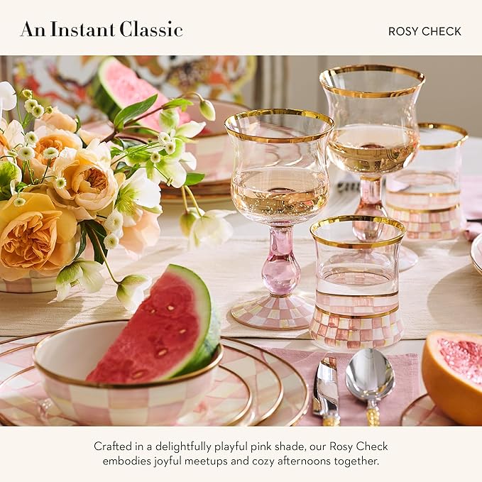 - ENTERTAINING ESSENTIAL: Elevate your serving dishes for every single snack or meal with our Rosy Check small bowl for relish. It features hand-painted, color-dragged pink-and-white checks on enameled steel and has a bronzed stainless-steel rim.