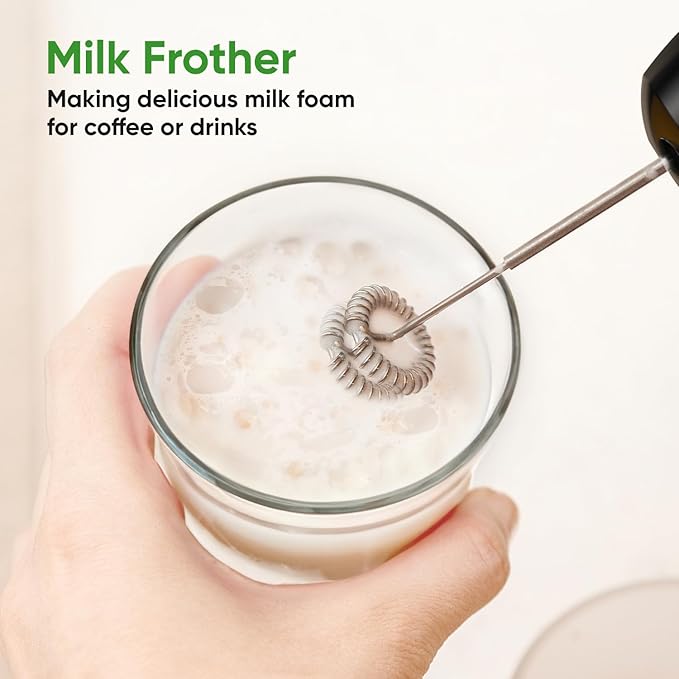 - All-in-One Kitchen Essential: 3 in 1 hand blend set includes the blending shaft to blend shakes, soup, sauces or baby food; Egg whisk for whipping cream or batter; Milk fother for foaming all milk or coffee types. Easyclick to detach and switch all attachments - ideal for quick meal prep and various kitchen needs