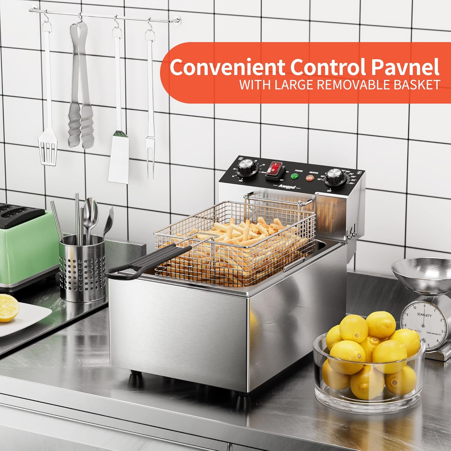 Electric Deep fryer Single Tank Deep Fryer with Basket Capacity 10L(10.5QT) Electric Countertop Fryers with 60 Minute Timer for Home Kitchen and Restaurant, 1700 Watts, 110V(10L)