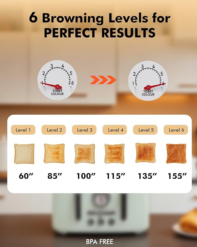 - Intelligent 6-Level Customization: Engineered for gourmet kitchens, the LONGDEEM 4-Slot Toaster offers 6 browning presets and Bagel/Defrost modes, mastering thick sourdough, frozen waffles, and chewy bagels with one-touch precision