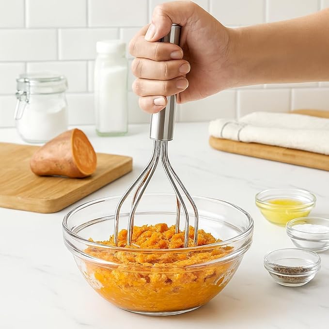 - EFFICIENT MASHING: Large pressing head with multiple wire loops ensures thorough and even mashing while requiring minimal effort