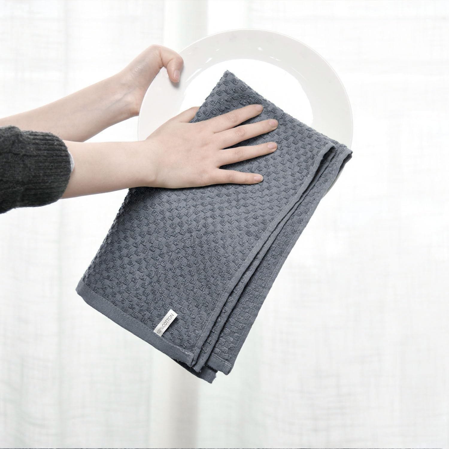 - COTTON DISH CLOTHS: 100% cotton kitchen towels that feel soft and comfortable. Unique design make it have durability. And it softens with each wash, so these dish towels won't scratch your delicate cookware, plates and pans.