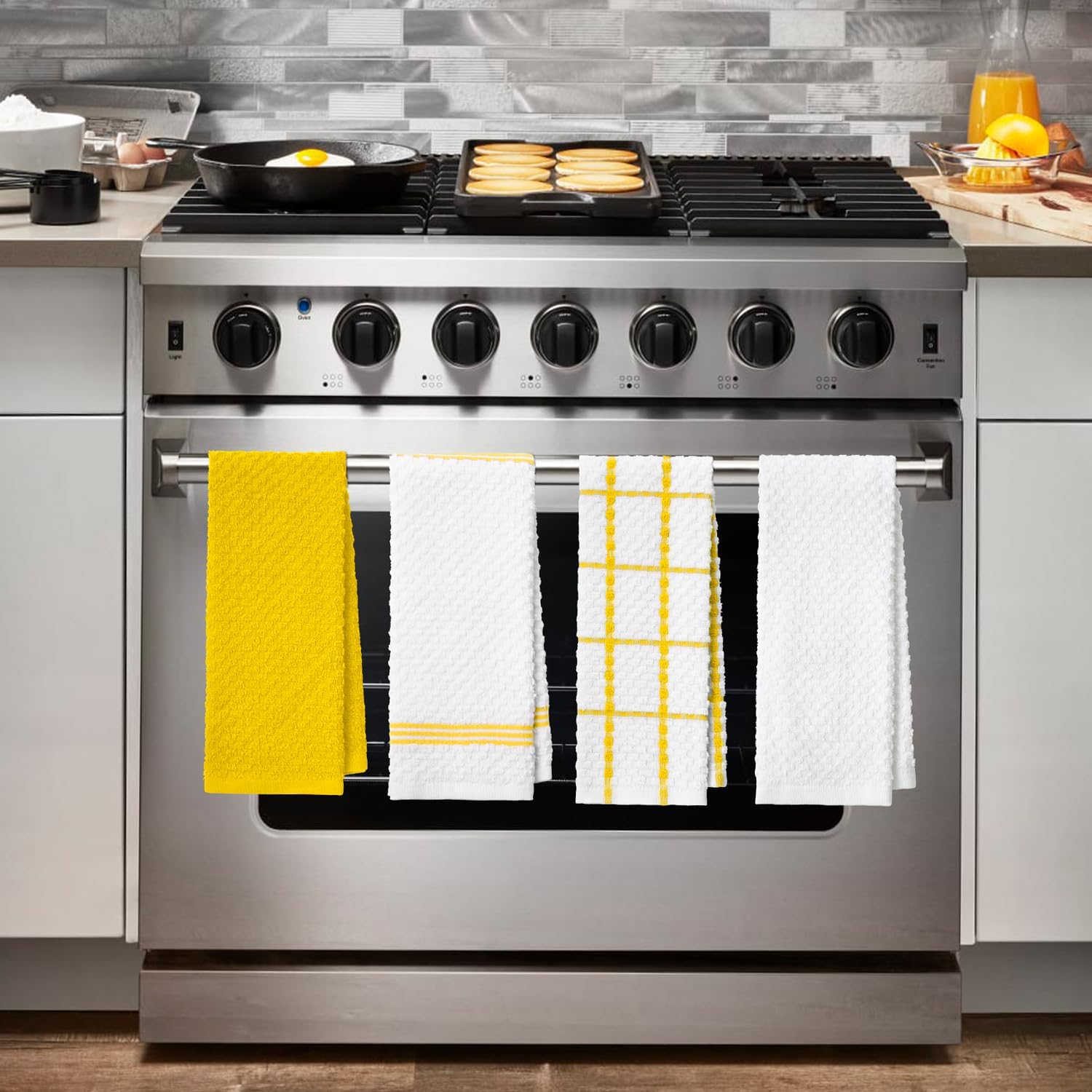 Artoid Mode Ring Spun Cotton Yellow Kitchen Dish Towels, 15x25 Inch Ultra Soft Absorbent Quick Drying Household Cleaning Tea Towels Bar Towels Set of 4