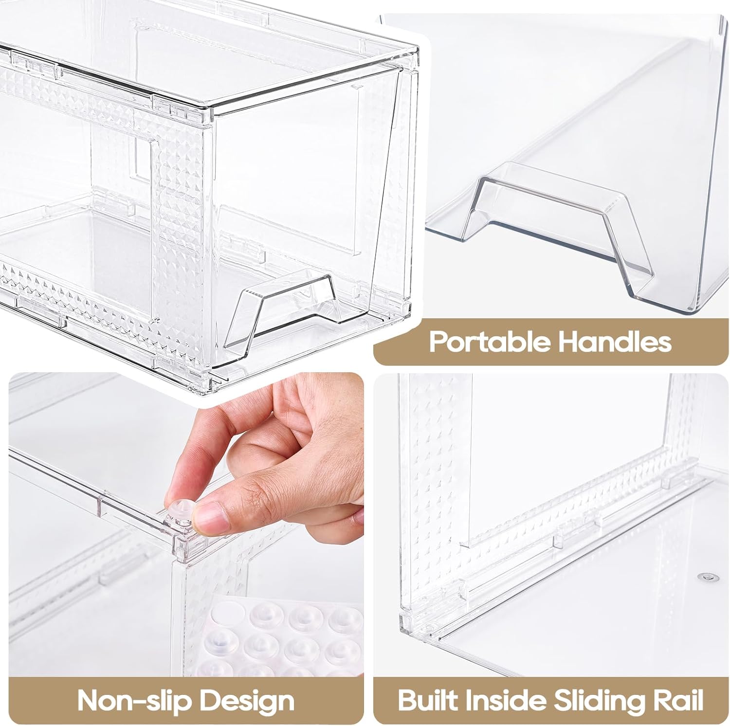 - Easy to Slide and Access: These makeup organizers are designed with built-in handles and smooth sliding rails for easy opening and closing. Add silicone pads underneath for extra stability on smooth surfaces