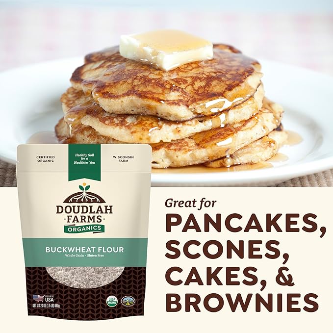 Organic Buckwheat Flour 25 lb Bulk - Non-GMO, USDA Organic, Gluten Free, Vegan - For Baking Bread, Pancakes, and More! Grown In USA, Farmed From Regenerative Soil by Doudlah Farms