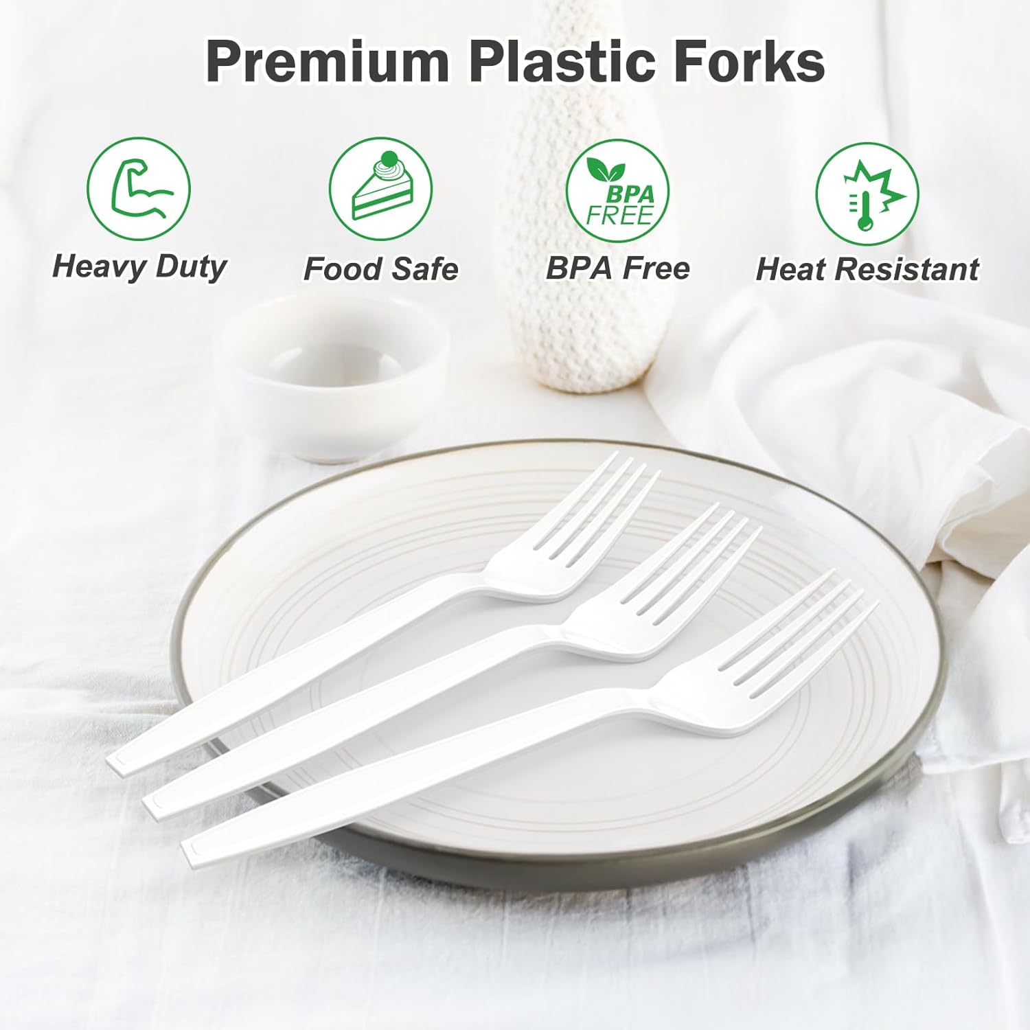 360 Count Extra Heavy Duty White Plastic Forks Disposable, BPA-Free, Heat Resistant, Solid and Durable Disposable Forks Bulk, Premium Plastic Forks heavy duty for Party Supply
