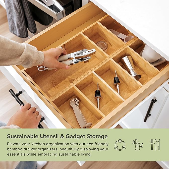 - UNMATCHED IN INNOVATION & QUALITY: KitchenEdge bamboo organizers are #1 in innovation and quality. Manufactured with ultra-premium specifications by a single partner, each piece delivers consistent quality, a flawless fit, and a streamlined look in every drawer you organize.