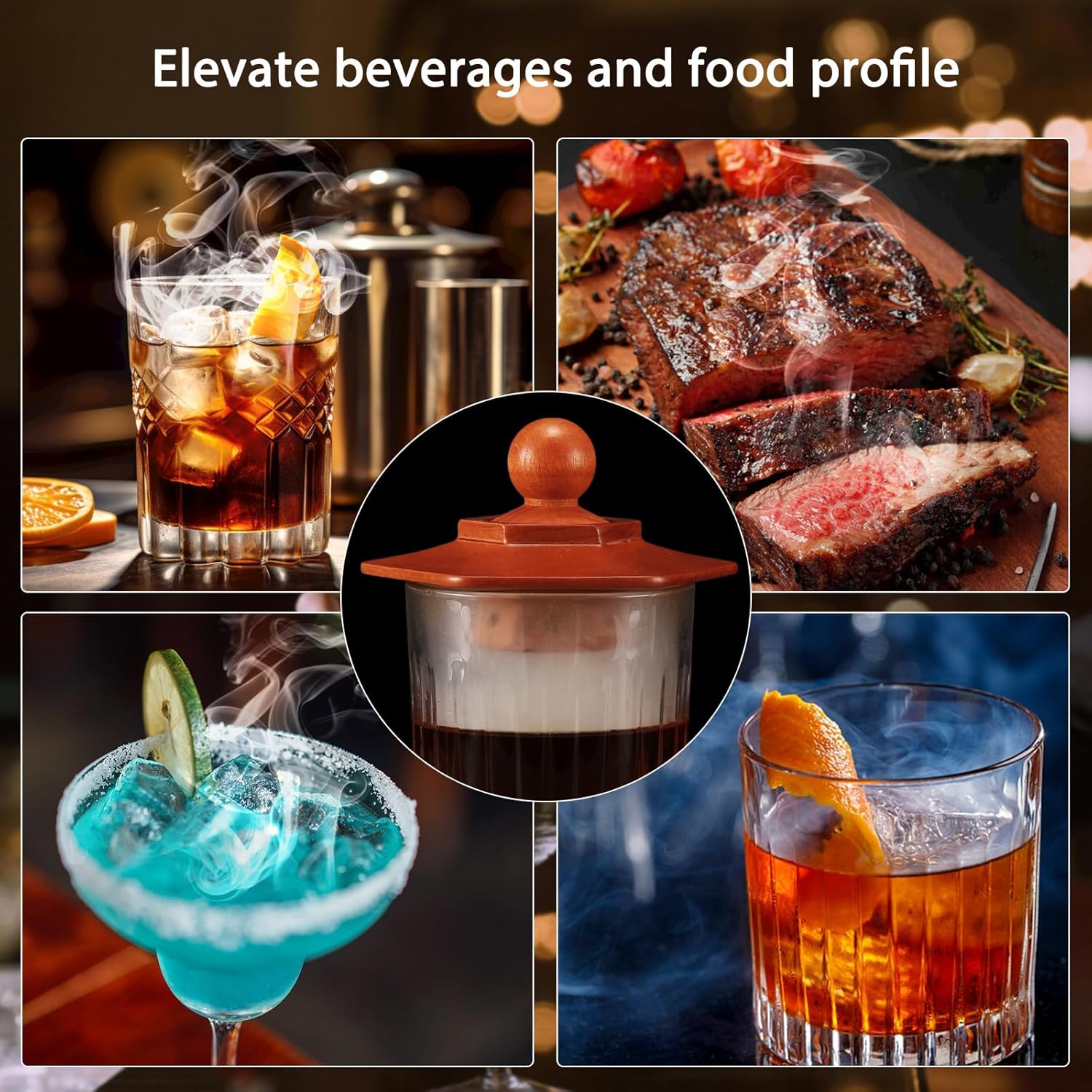 - Multi-functional Smoker Set - Our Cocktail Smoker kit is not just for beverages, it is also a versatile tool to infuse natural flavors into meats, cheese, dried fruits, BBQ, and more. Furthermore, smoke infuser allows you to create an enchanting essence of smoke for kitchen, home-bar, or outdoor occasions like picnic, hiking, fishing and so on