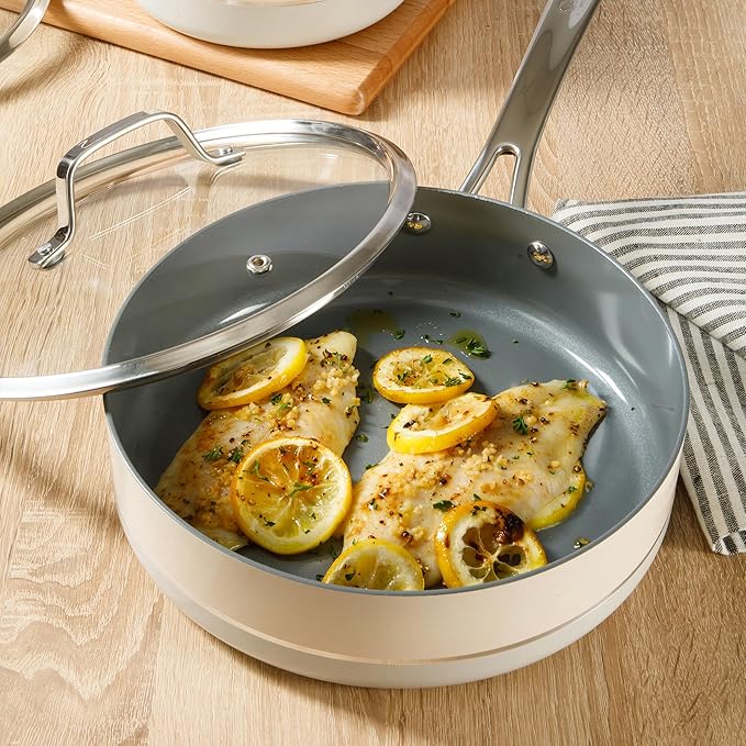- CERAMIC NONSTICK COOKWARE: easy-release interior makes more room for healthier cooking options and less time for cleanup.