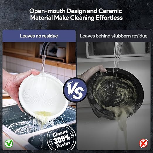 - High Efficiency & Food Safety: The ceramic Japanese mortar features an grinding ridged interior that boosts grinding efficiency by 50%, helping you achieve your desired texture faster than with traditional mortars. It comes with a wooden pestle, which, unlike traditional stone sets that may produce stone debris, ensures no fragments mix into your food—avoiding potential health risks