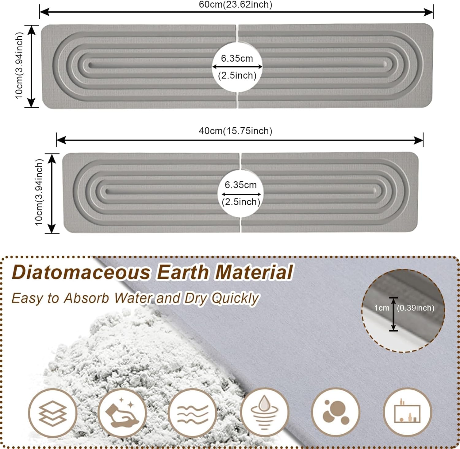 Faucet Mat for Kitchen Sink, Diatomite Super Absorbent Fast Drying Stone Sink Tray for Bathroom Kitchen Sink Splash Guard(Square Grey,23.6x3.9in)