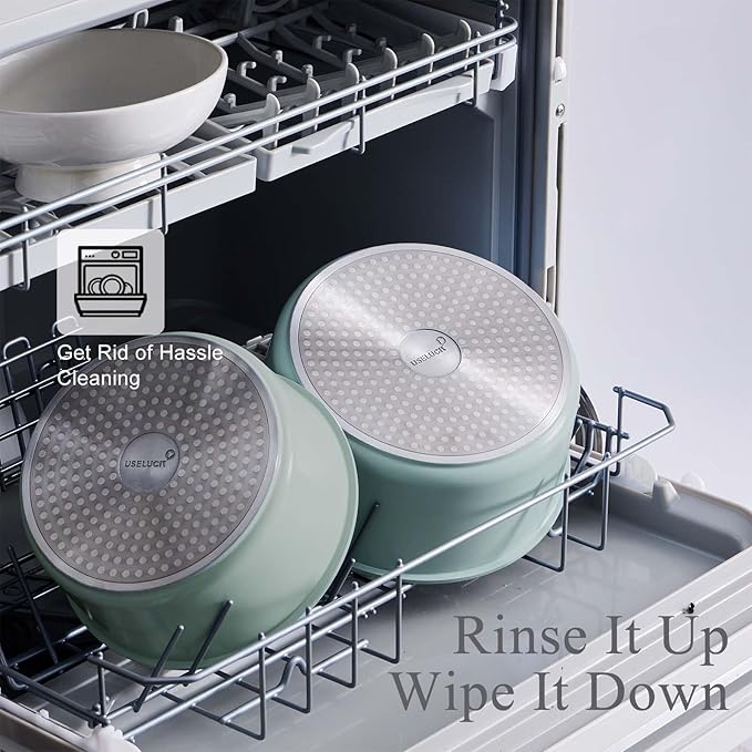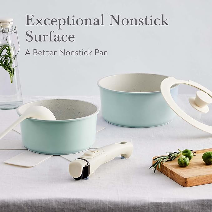 - 【Healthy Cookware Set 】: Featuring a 100% recyclable aluminum core and eco-friendly packaging (85% recycled cardboard), it helps reduce environmental impact. Our kitchen cookware set’s coating is made from natural ceramic, free from Teflon, PFAS, PTFE, PFOA, lead, or cadmium, and does not release toxic fumes, making it safe for baby food and sensitive diets. Every meal matters. Our cookware is your family's first line of defense, guarding health from breakfast eggs to dinner stews.