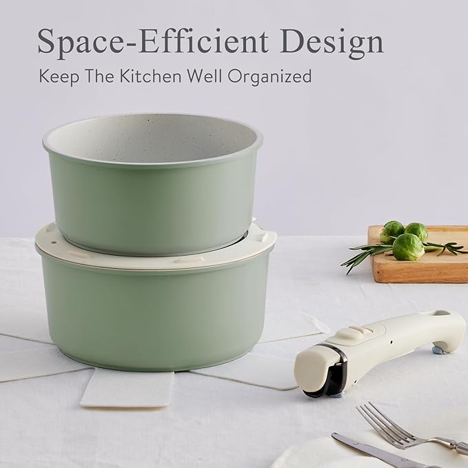 Pots and Pans Set Healthy Non toxic Non Stick Ceramic Cookware Set 21 Pcs Detachable Handles, Oven Safe, Induction Dishwasher, Stackable Frying Pan (PFOS, PFOA Free),Green